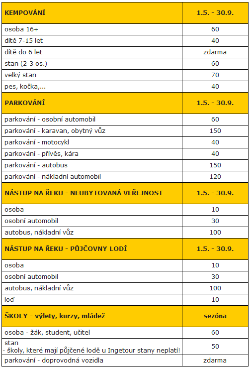Nabídka sportu a zábavy:Vodní turistika. Koupání. Rybaření. Cykloturistika.