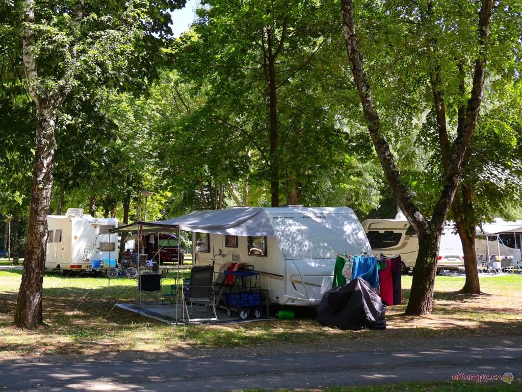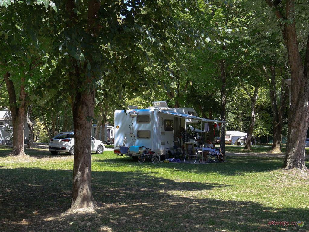Místa pro karavany a stany: Prostorná místa s elektrickou přípojkou 10 A zahrnutou v ceně.