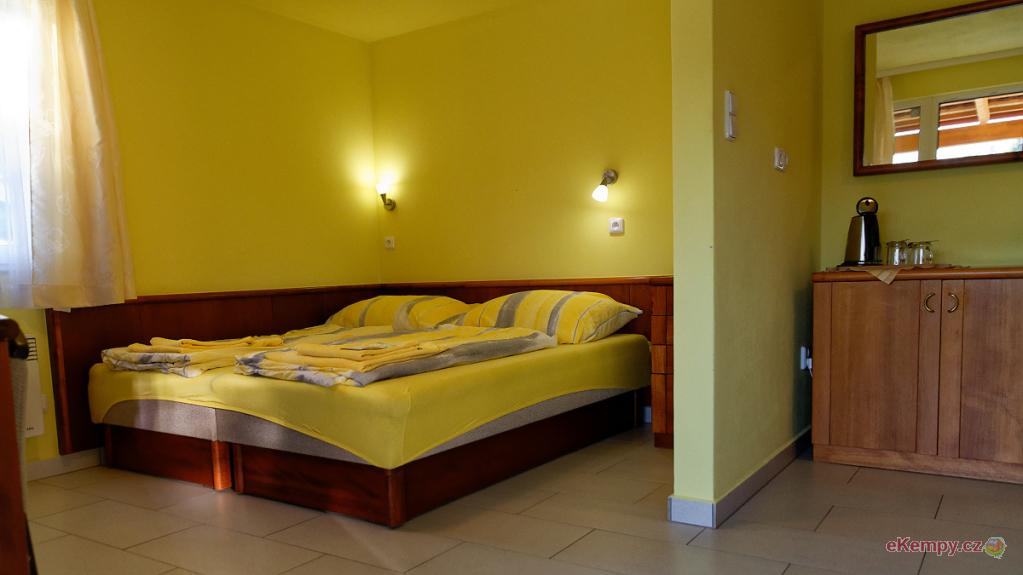 Nabízí ubytování 1 x jednolůžkový pokoj, 4 x dvoulůžkový, 4 x třílůžkový, 5 x čtyřlůžkový pokoj a 5 x 4L bungalov.