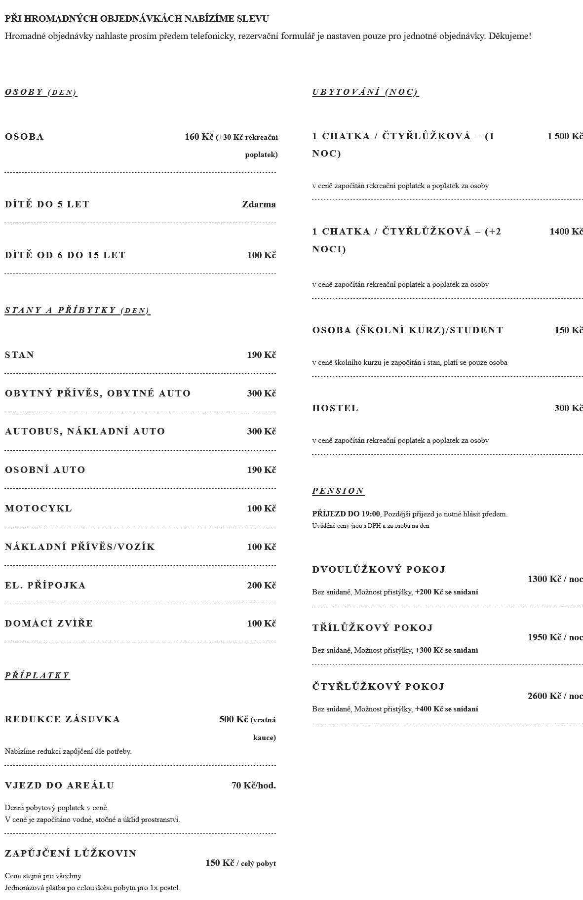 🛖 Ubytování zděné nové 4L chatky: 1400Kč/chatka