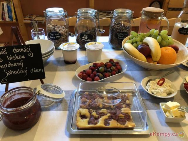 Jídelna, kde připravujeme famózní snídaně v bio a lokální kvalitě