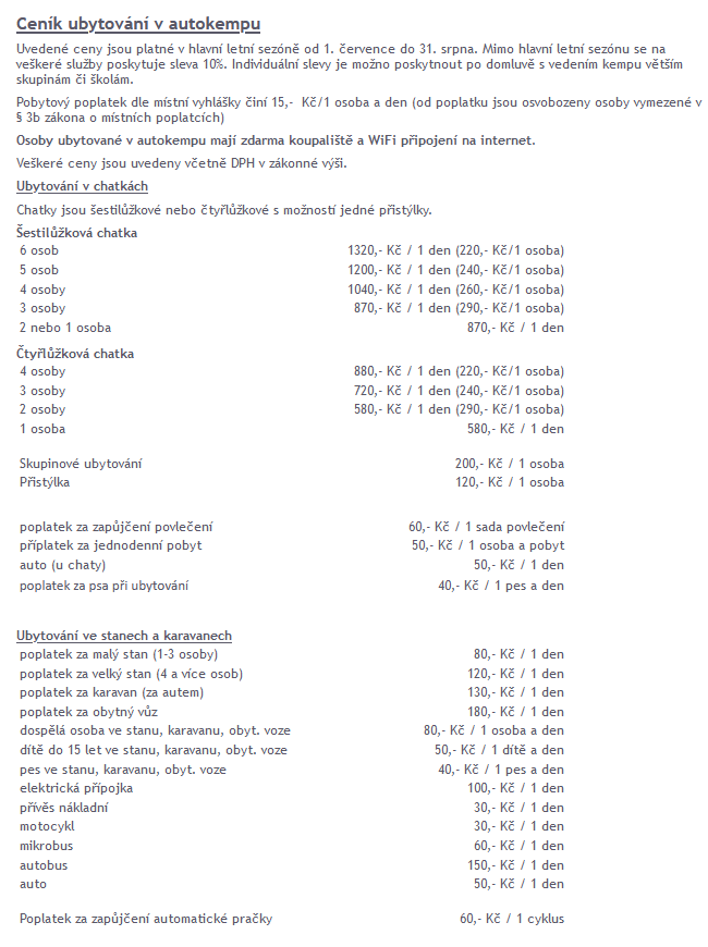 Nabídka koupání:Součástí kempu je koupaliště. Ubytovaní hosté mají koupání zdarma.