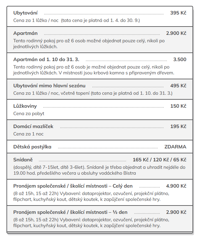Dítě: 80Kč/den - - Elektřina: - - - -