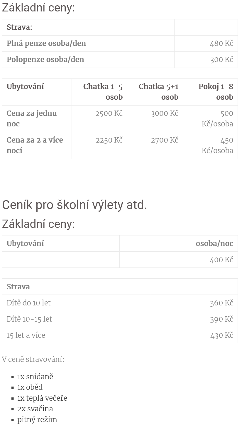 Nabídka občerstvení:Kompletní stravovací služby, restaurace s možností grilování a rožnění, DIGI TV a minibar. K ubytování možno zakoupit snídaně, polopenze i plné penze.