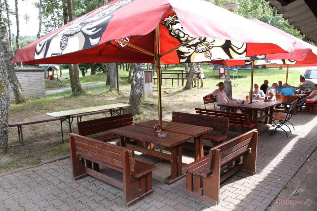 Ubytování je možné v chatkách, karavanech, nebo vlastních stanech, či přívěsech. V areálu je k dispozici kuchyňka, obchůdek, ale také bohatá nabídka občerstvení - smažený sýr, hranolky, řízky, klobásky... Kdo se chce v teplém počasí svlažit, nebo ho jen honí mlsná, zase může zvolit kopečkovou zmrzlinu, nebo si vybrat z naší nabídky točených nápojů (pivo, limo).