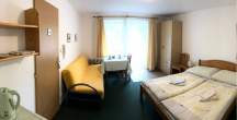 Možnost ubytování v chatce, pokojích či apartmánech.