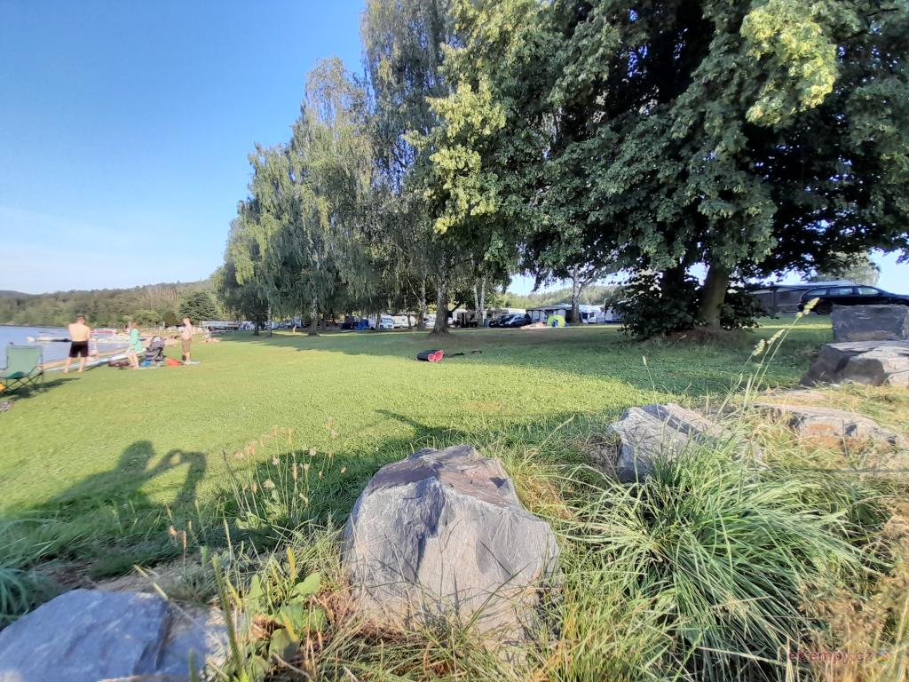 Na táboření s sebou nemusíte vláčet plné tašky jídla, poobědvat lze dobrá hotová jídla i minutky, mimo jiné v restauracích na 200m vzdálené návsi, vše potřebné od denního tisku a drogerie přes maso na gril, a denně čerstvé pečivo až po sladké zákusky můžete zakoupit v místní dobře zásobené samoobsluze s cukrárnou.