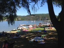 Z písečné pláže přímo do čisté vody Slapské přehrady na řece Vltavě.