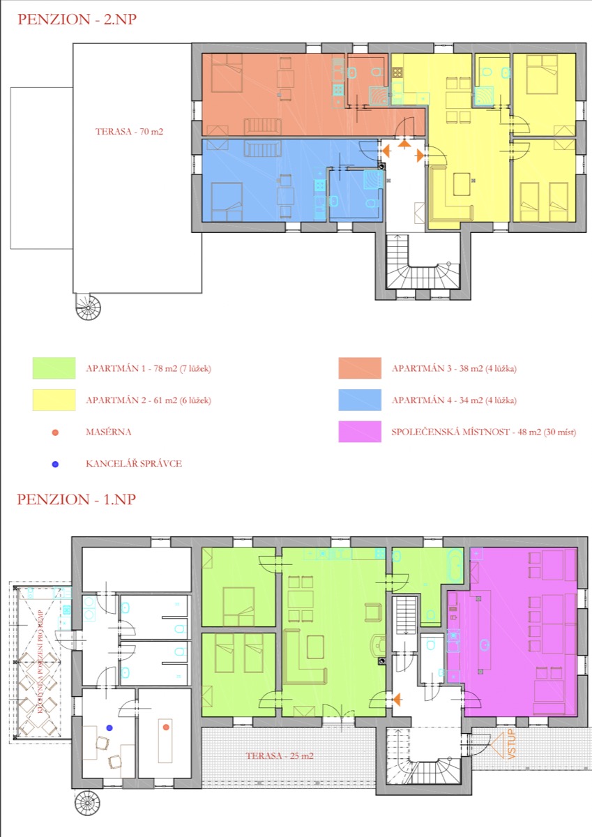 V areálu je i přírodní jezírko. Je zde krásné posezení a zároveň nabízí možnost využít společenskou místnost s kapacitou 20 osob a možností objednání snídaně.