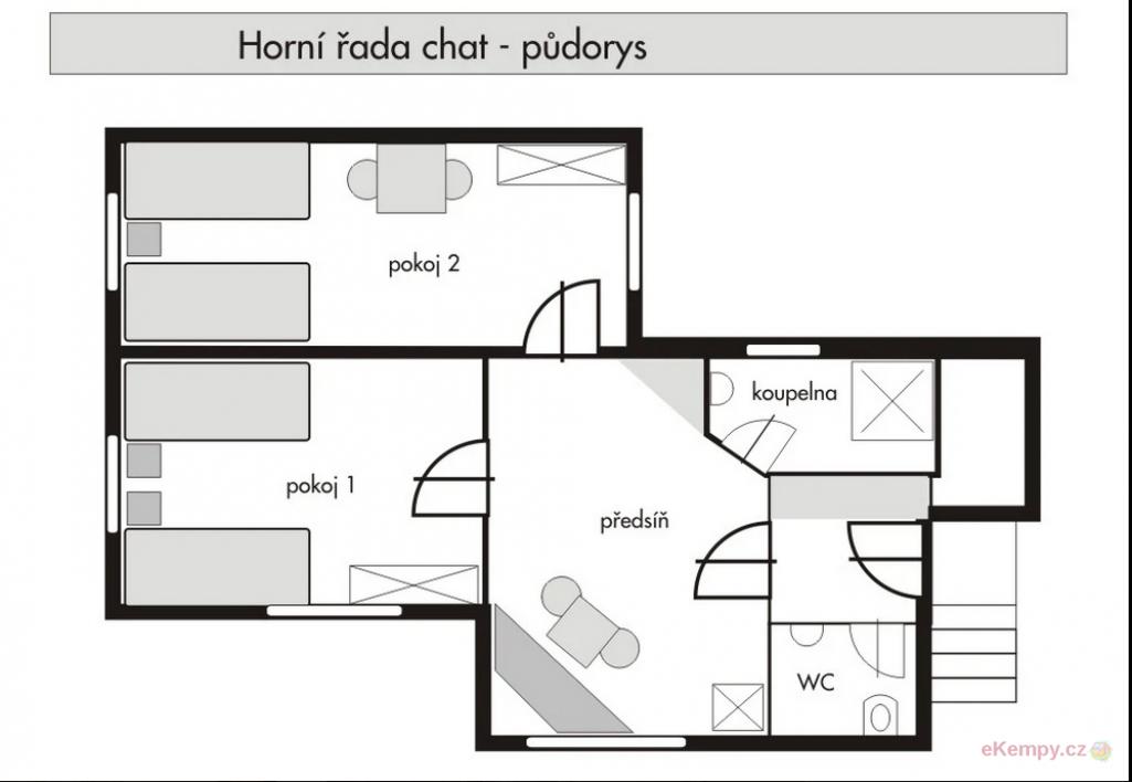 4L letní chatky pro skromnější ubytování s 2x patrovou postelí, el.zásuvkou, ideální pro skupinové akce.